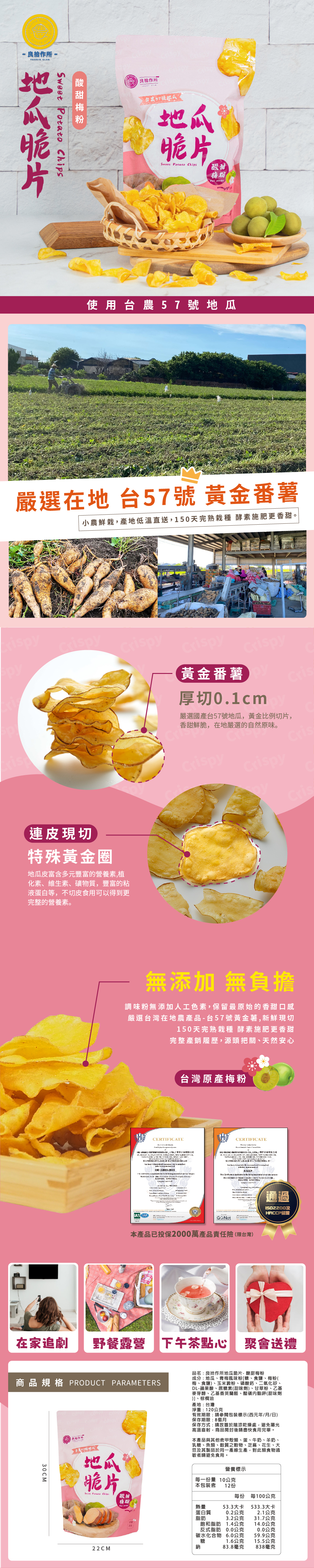 厚切0.1cm酥脆製程,黃金比例切片,連皮酥炸,香甜鮮脆