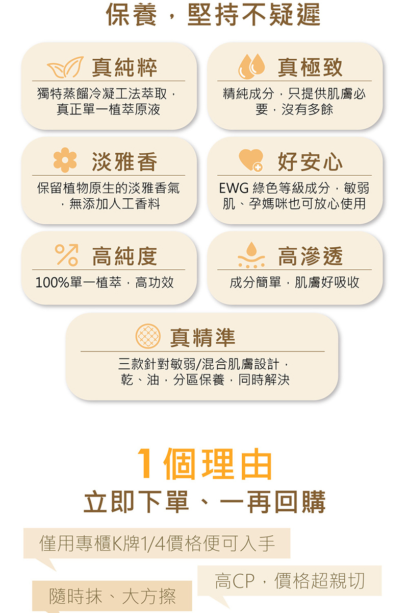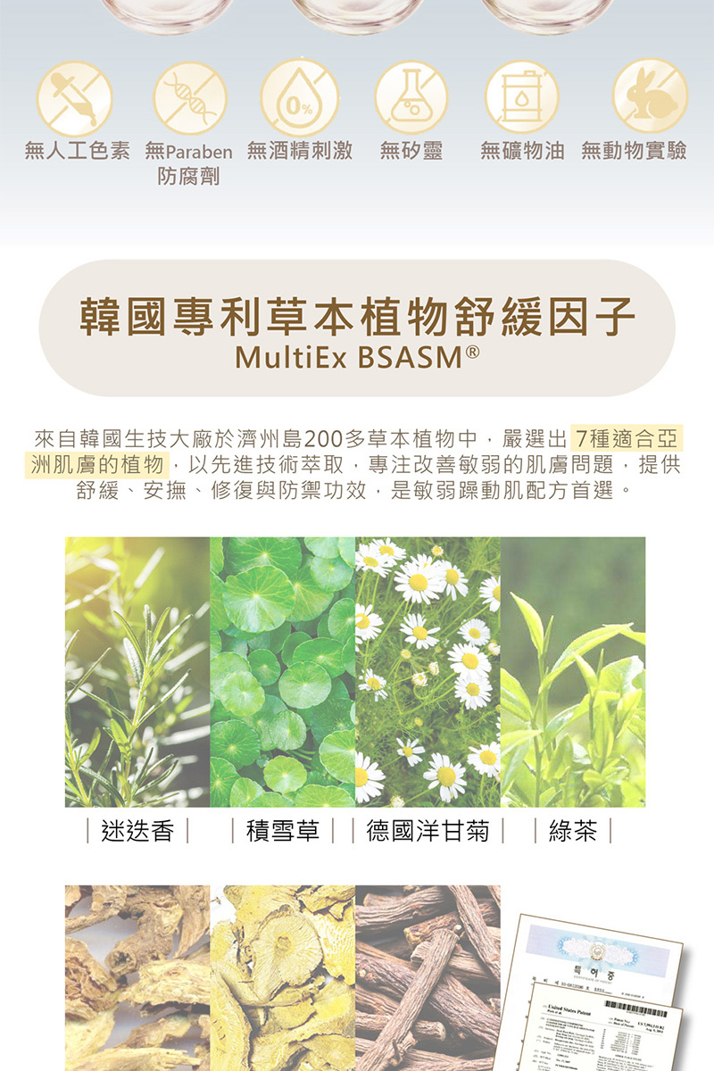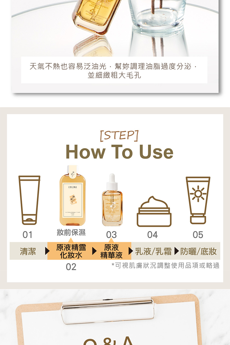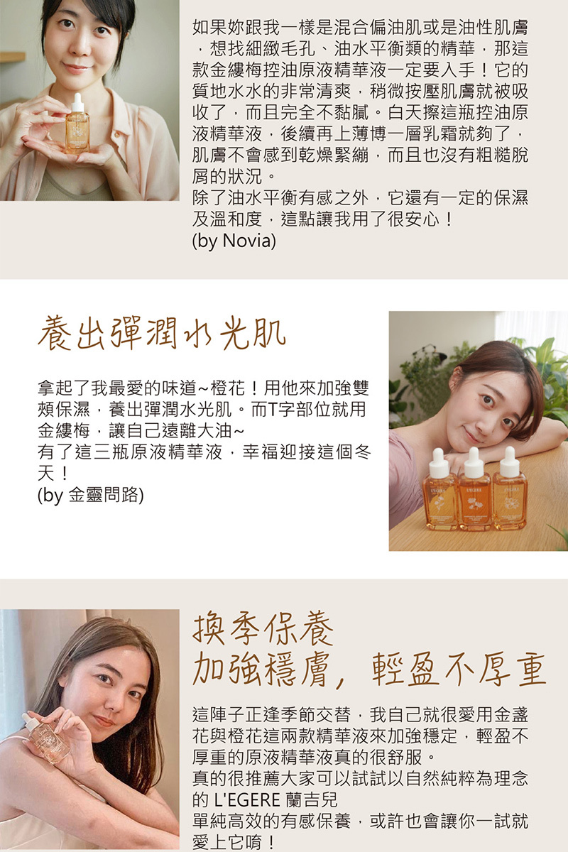 *金盞花:舒緩 / 金縷梅:控油 / 橙花:保濕