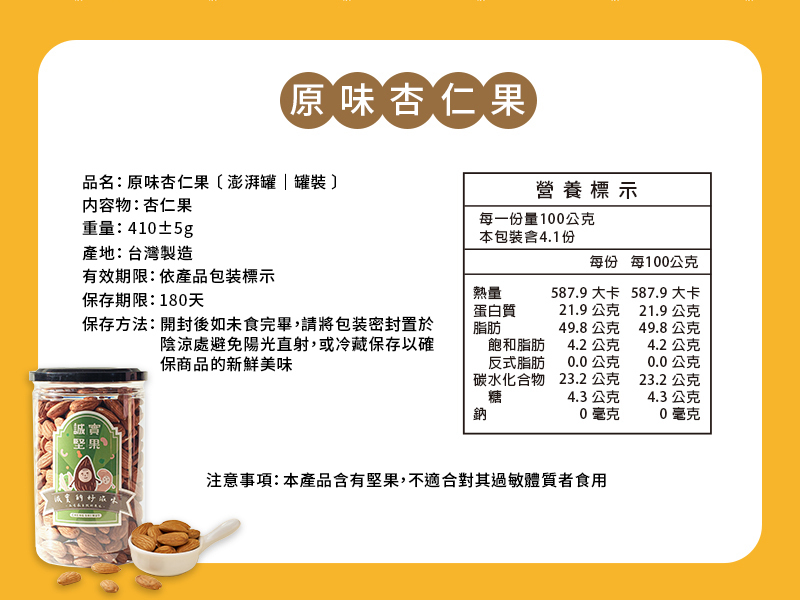 注意事項:本產品含有堅果,不適合對其過敏體質者食用。