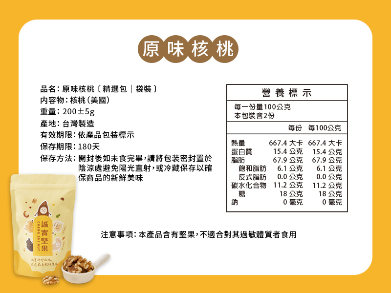 注意事項:本產品含有堅果,不適合對其過敏體質者食用。