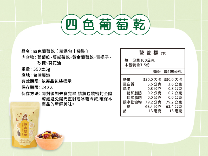 注意事項:本產線與堅果類產品於同一工廠生產,食物過敏者請留意。
