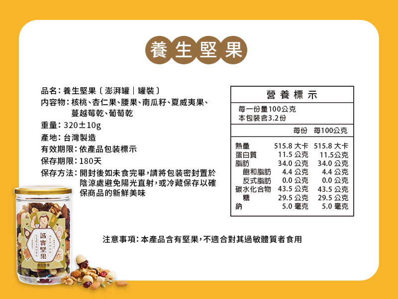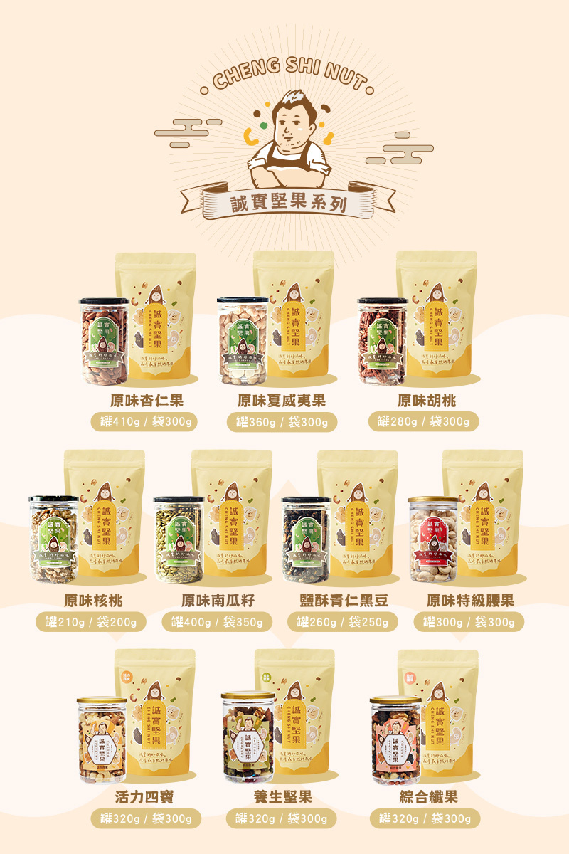 核桃、杏仁果、腰果、南瓜子.、夏威夷果、蔓越莓乾、葡萄乾