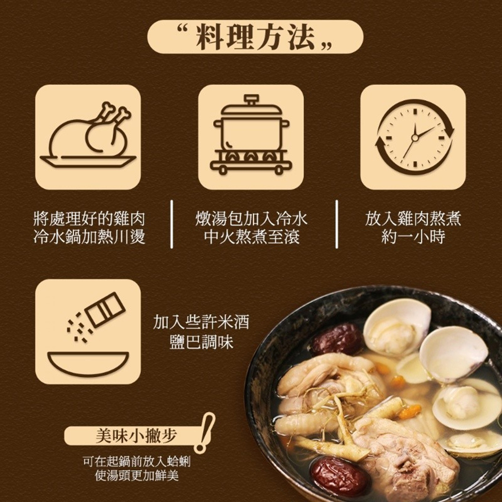 等多種中藥配方,輕鬆就能享用美味的藥膳燉包