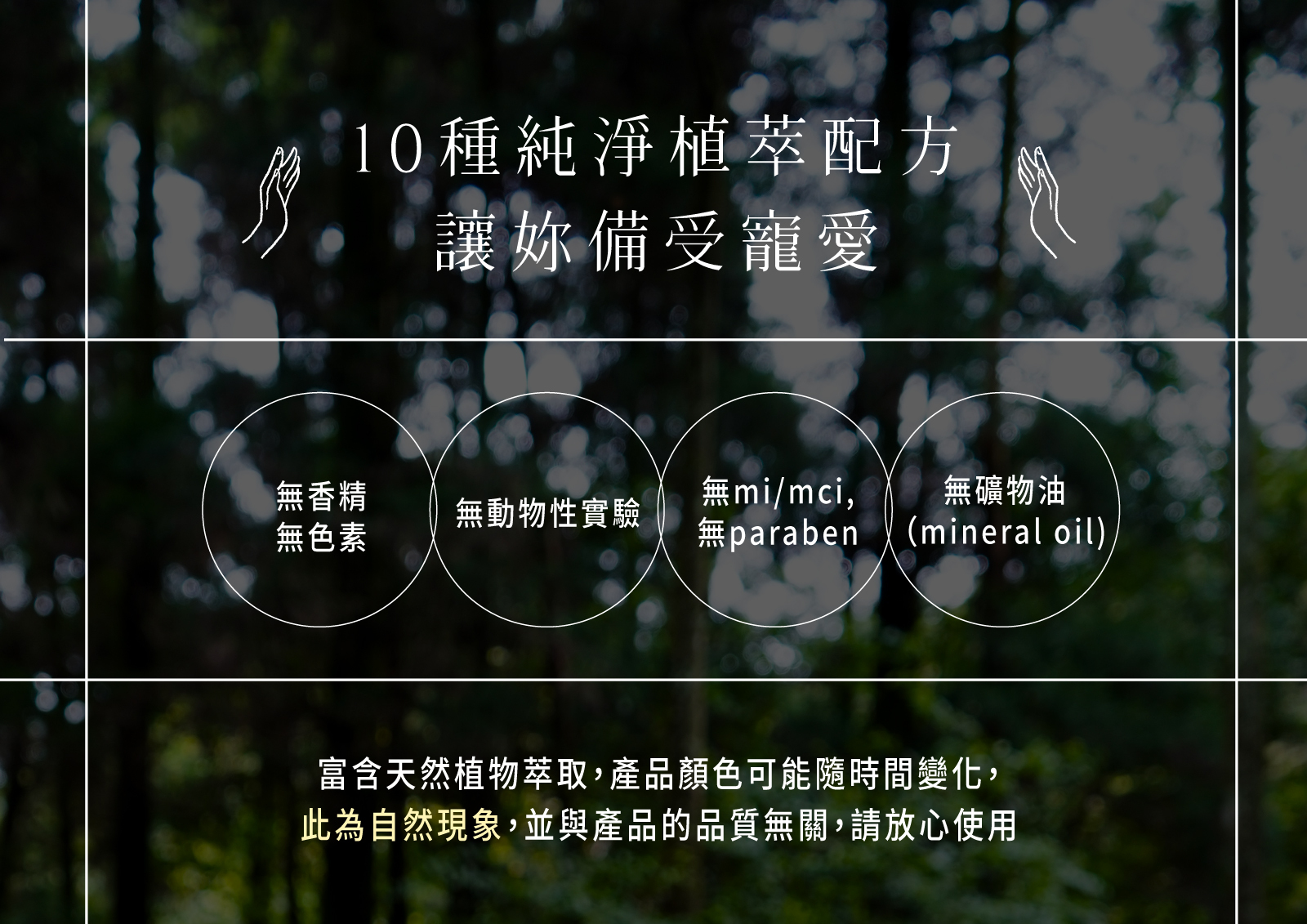 *含天然植物萃取,產品顏色可能隨時間變化,此為自然現象,與產品的品質無關,請放心使用。