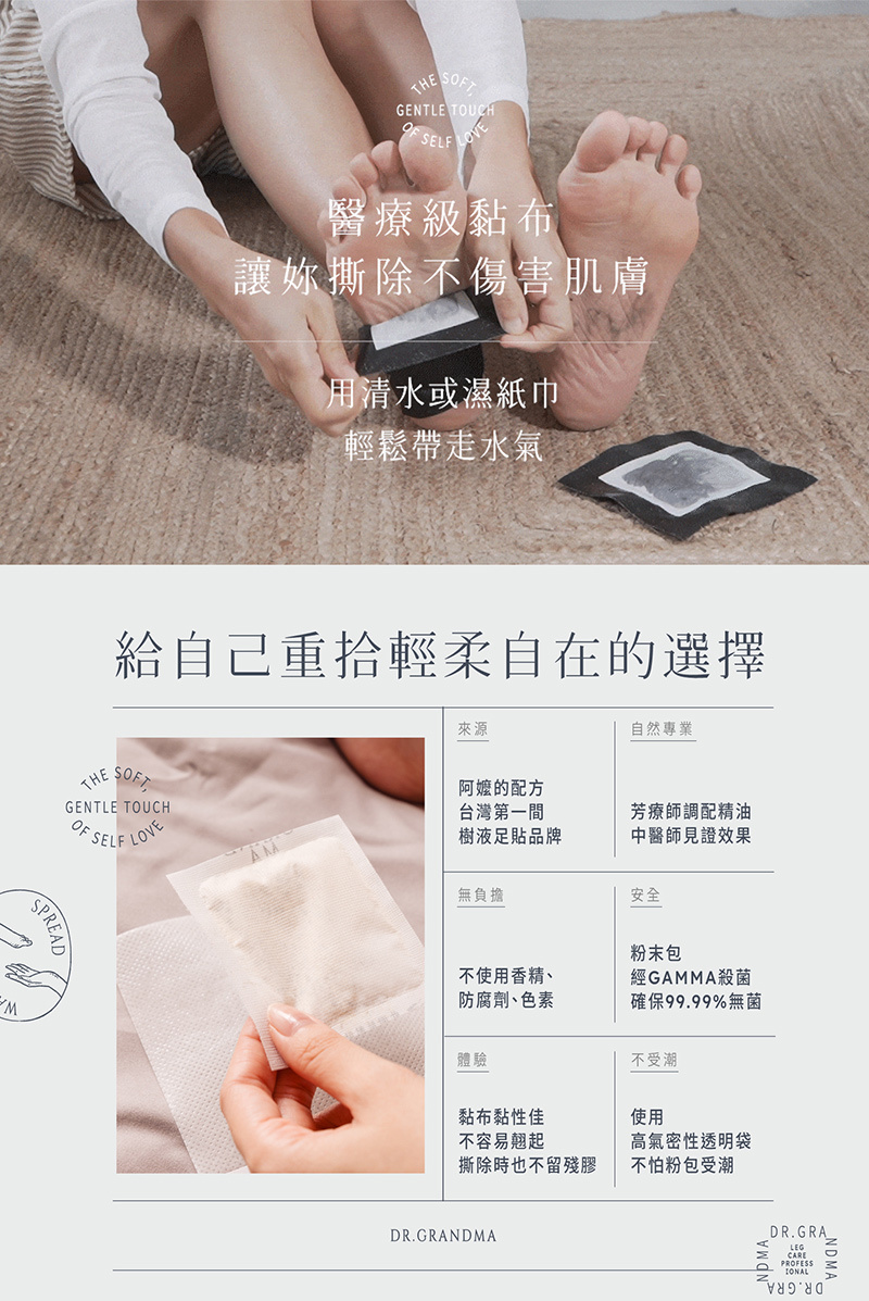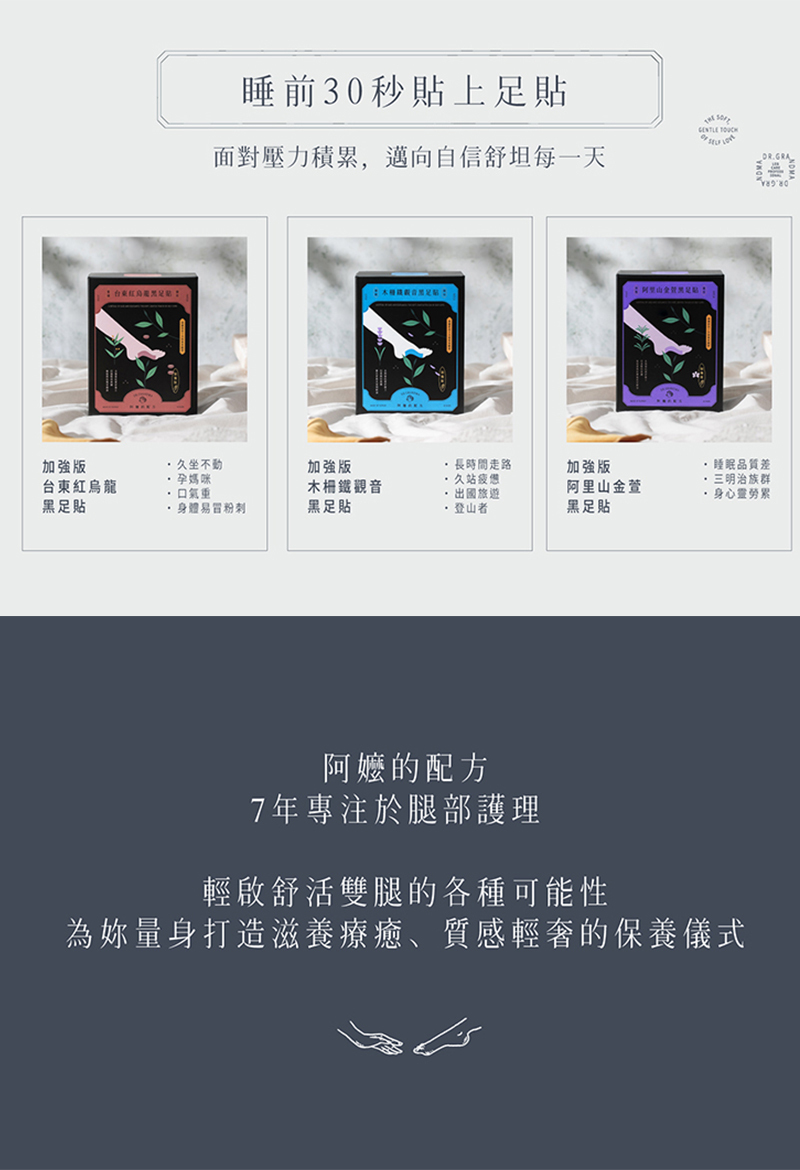 A:人的足底是許多經絡的匯集處,透過有幫助的成分去促進循環,進而帶出水氣、舒緩腳酸、放鬆雙腿,相似於中醫學的三伏貼。