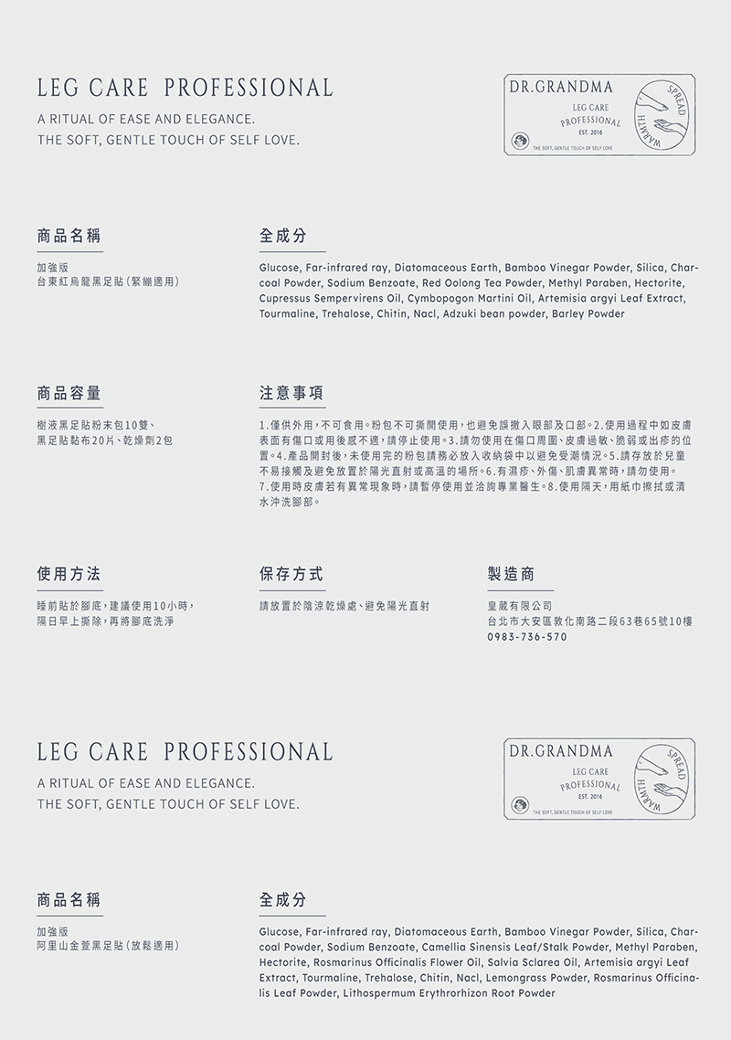 加強版黑足貼除了添加上述的新成分之外,再另外添加了「巴基斯坦黑鹽」,舒緩力更是貼一次就很有感!